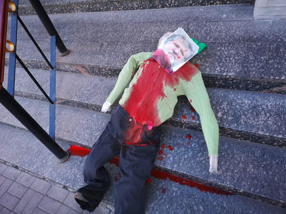 15:29  Тем временем на ступеньки центральной синагоги Киева кто-то бросил "окровавленное" чучело Коломойского. Фото опубликовал в соцсетях экс-нардеп Игорь Мосийчук.