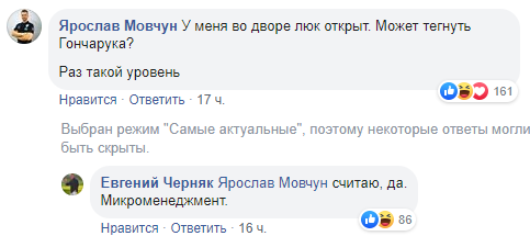 "У меня во дворе люк открыт. Может тегнуть Гончарука? Раз такой уровень" - поинтересовались подписчики в комментариях.