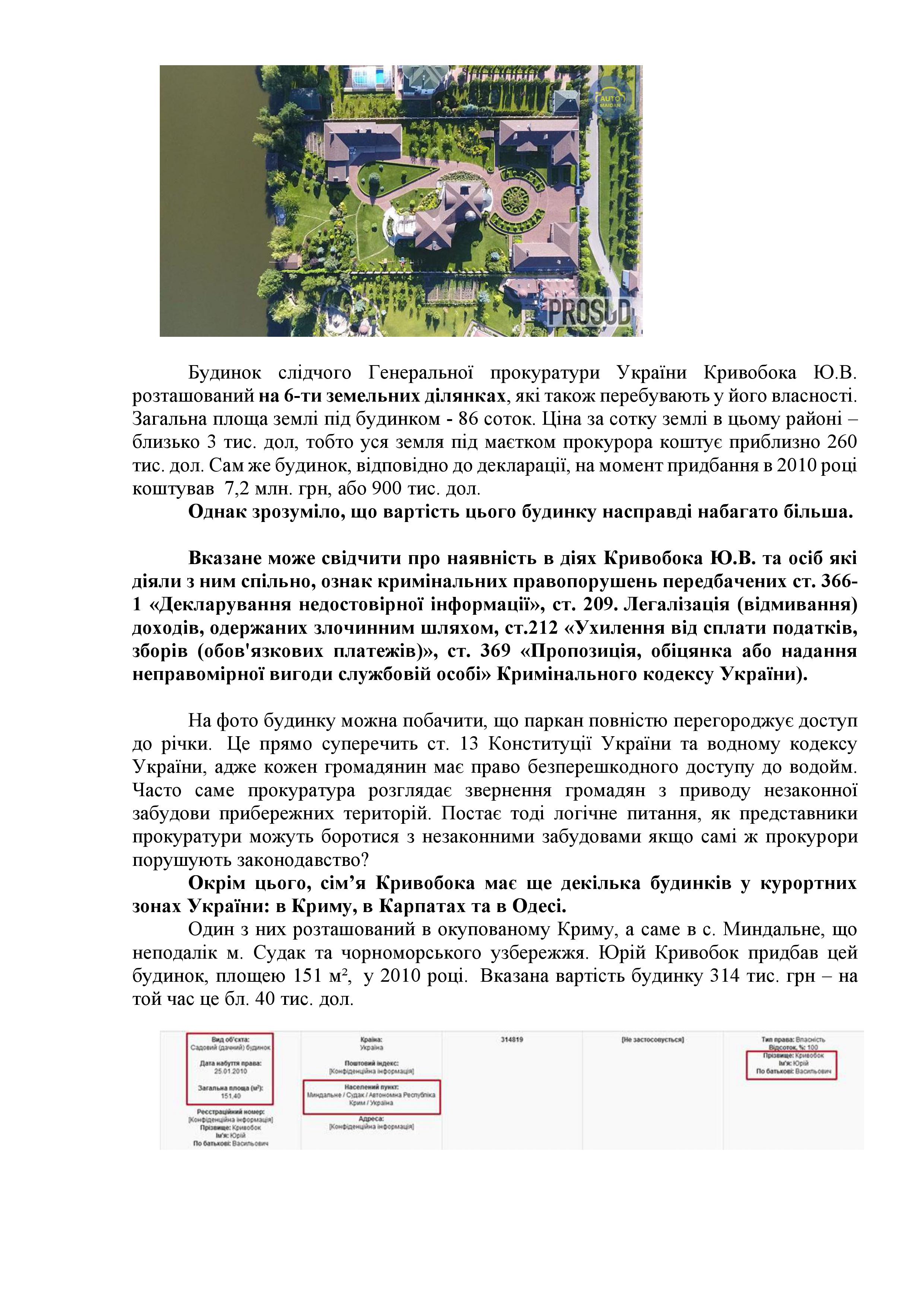 Напомним, Генпрокуратура Украины вызвала бывшего министра юстиции Елену Лукаш, чтобы вручить ей уточненное пследователь Кривобок. Между тем, жена Юрия Кривобока в 2015 году получила 154 млн грн дохода от продажи недвижимого имущества.
