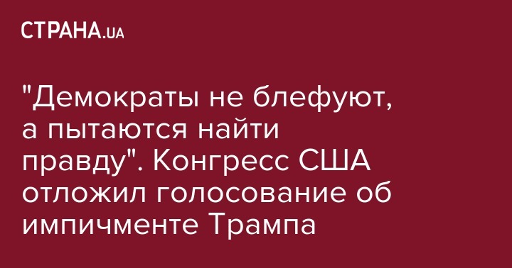 В Палате представителей Конгресса США отложили голосование по поводу импичмента президента Дональда Трампа. Об этом заявила спикер Нэнси Пелоси, передает Fox News.