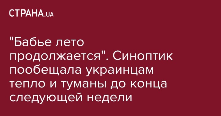 "Бабье лето продолжается". Синоптик пообещала украинцам тепло и туманы до конца следующей недели