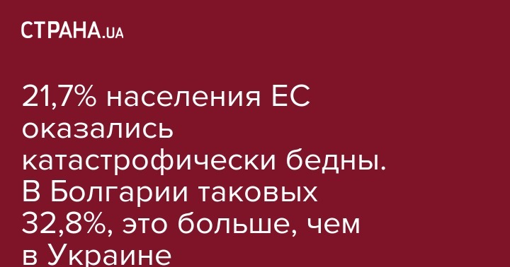 21,7% населения ЕС оказались катастрофически бедны. В Болгарии таковых 32,8%, это больше, чем в Украине