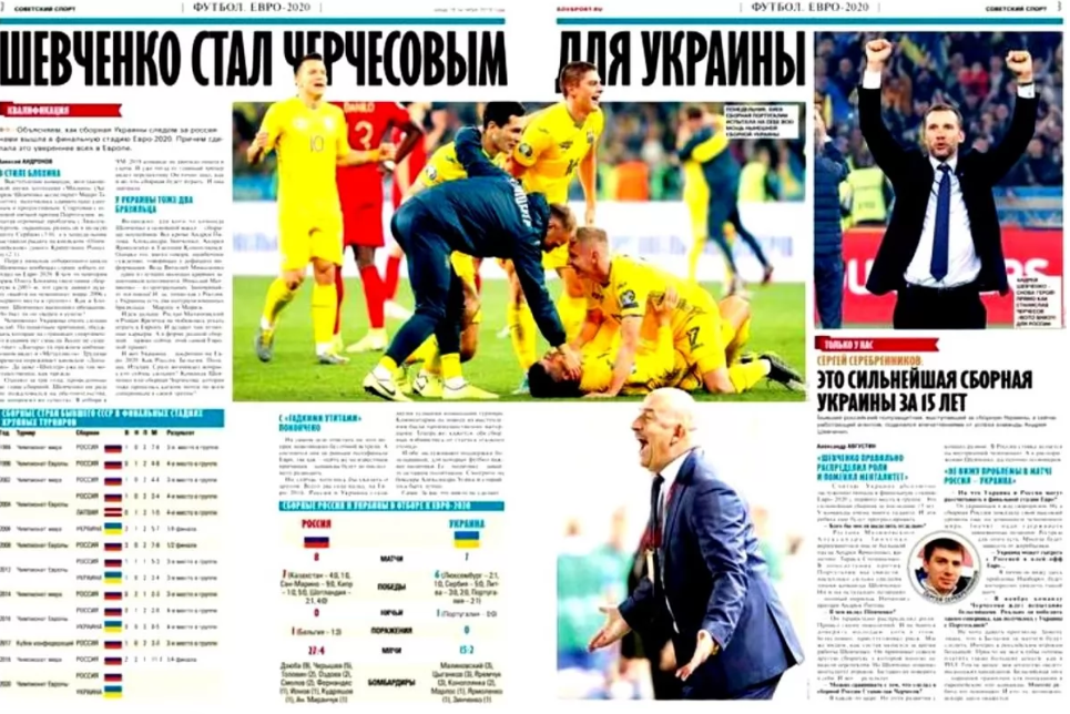 В среду, 16 октября, одно из ведущих спортивных изданий России - газета "Советский спорт" вышла с заголовком на украинском языке. Название статьи "Україна - це Європа" размещено на первой странице этого профильного ежедневника.