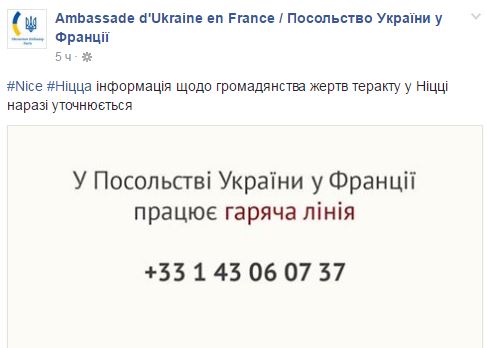 8.00 - Посольство Украины во Франции открыло горячую линию для пострадавших.
