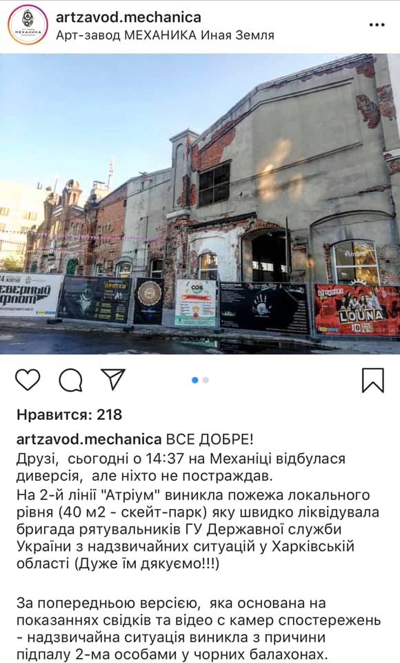 Площадка для скейтеров вспыхнула на харьковском арт-заводе "Механика". Пожар случился в четверг, 17 октября и  попал на камеры наблюдения, а видео было опубликовано в соцсети.