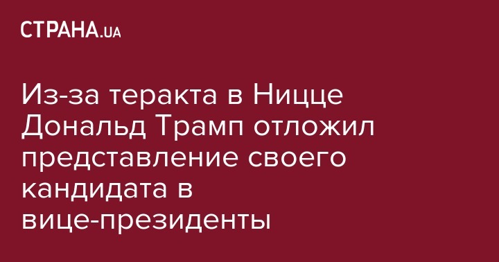 Претендент на пост президента США от Республиканской партии Дональд Трамп из-за теракта в Ницце отложил объявление имени своего кандидата в вице-президенты.