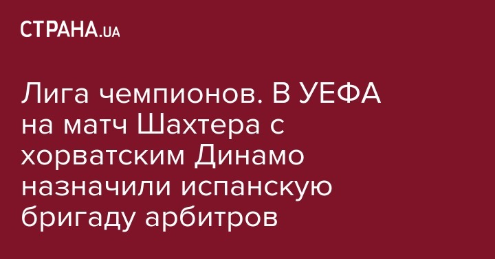 Лига чемпионов. В УЕФА на матч Шахтера с хорватским Динамо назначили испанскую бригаду арбитров