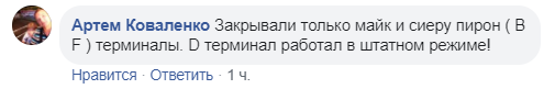 Работу "Борисполя" остановили, пока свои выводы не огласит Госслужба по чрезвычайным ситуациям. При этом пользователи в Facebook сообщали, что на деле не работали только терминалы B и F, а D – функционировал.