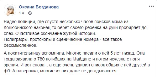 Женщиной, которая в среду, 23 октября выкрала трехмесячного ребенка в Коцюбинском в Киевской области оказалась медик-волонтер Анастасия Полищук, которая принимала участие в событиях на Майдане в 2013-2014 годах.