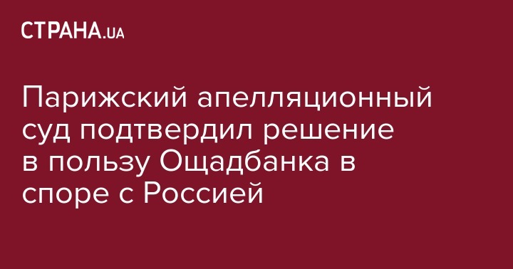 Парижский апелляционный суд подтвердил решение в пользу Ощадбанка в споре с Россией