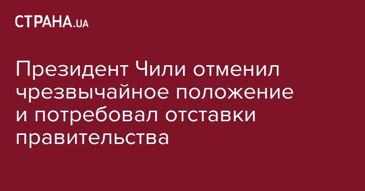 Президент Чили Себастьян Пиньера отменил чрезвычайное положение в стране. Также глава государства призвал правительство подать в отставку. Об этом сообщает "Интерфакс".