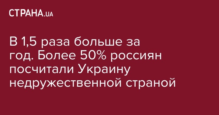 В 1,5 раза больше за год. Более 50% россиян посчитали Украину недружественной страной
