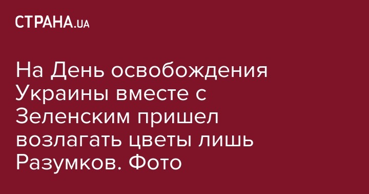 На День освобождения Украины вместе с Зеленским пришел возлагать цветы лишь Разумков. Фото