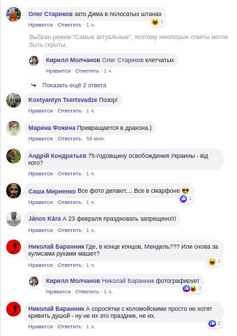 В комментариях к посту пользователи выразили свое негативное мнение к мероприятию. "Даже Гончарук не стал утруждаться...", "Позор!", "А соросятки с коломойскими просто не хотят кривить душой - ну не их это праздник, не их."