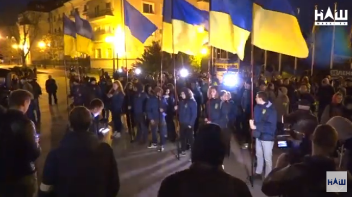 20:00 Все поют гимн Украины. После кричат "Слава нации! Смерть врагам!"