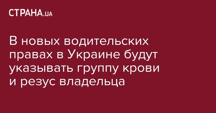 В новых водительских правах в Украине будут указывать группу крови и резус владельца
