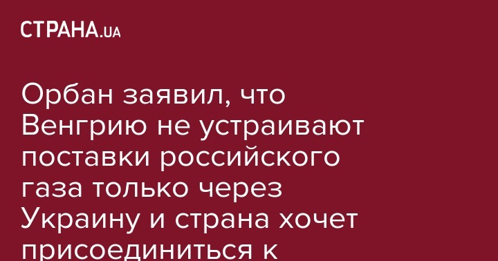 Орбан заявил, что Венгрию не устраивают поставки российского газа только через Украину и страна хочет присоединиться к "Турецкому потоку"