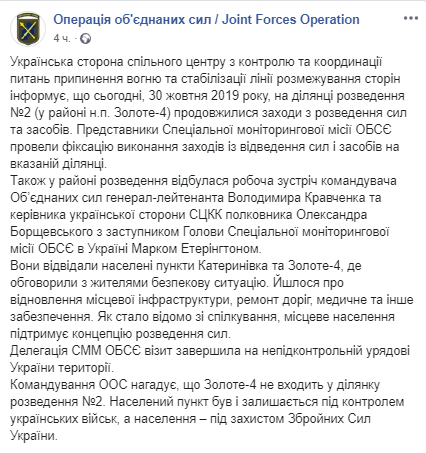 Как сообщалось, Золотое-4 не входит в участок разведения №2. Населенный пункт остается под контролем украинских войск, напоминает командование ООС.