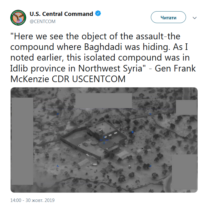 — U.S. Central Command (@CENTCOM) 30 жовтня 2019 р.