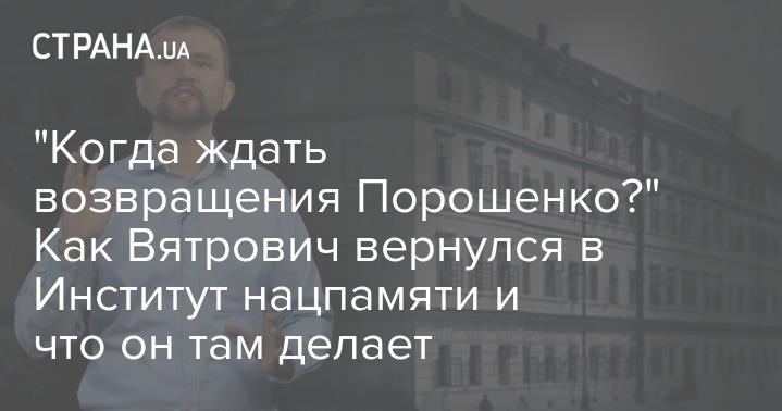 "Вятрович снова в институте национального беспамятства. Когда ждать возвращения Порошенко?", - пишет блогер Дмитрий Коломийченко.