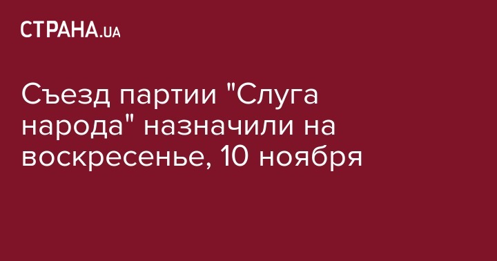 Съезд партии "Слуга народа" назначен на ближайшее воскресенье, 10 ноября. Он пройдет в Киеве. Об этом передает "УП" со ссылкой на пресс-службу фракции.