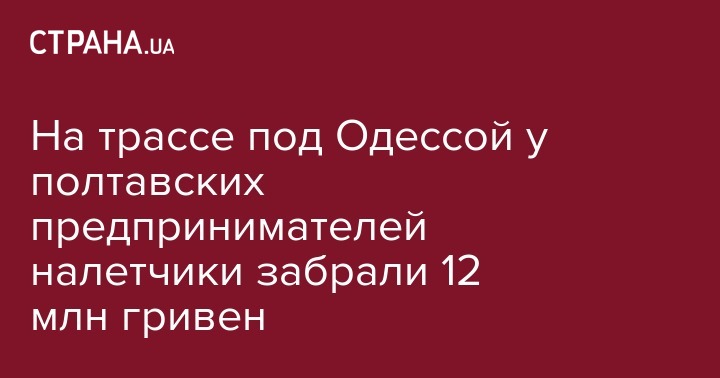 В понедельник вечером, 4 ноября, в Одесской области неизвестные ограбили предпринимателей из Полтавы на 12 млн грн. Об этом сообщило местное издание Думская.