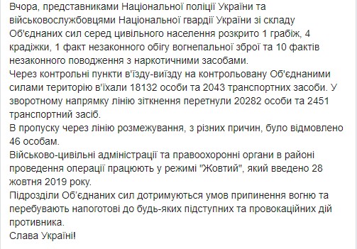 Напомним, в первый день ноября в зоне ООС зафиксировано 13 обстрелов за сутки. В Петровском их не было.