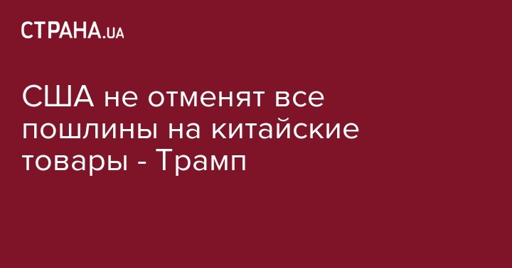 "Китайцы хотят отмены пошлин. Но я ни на что не согласился. Китай хочет получить отмену хоть какой-то части. Они знают, что я не отменю пошлины полностью", - сказал Трамп.