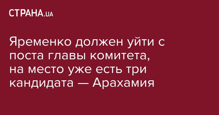 Яременко должен уйти с поста главы комитета, на место уже есть три кандидата — Арахамия