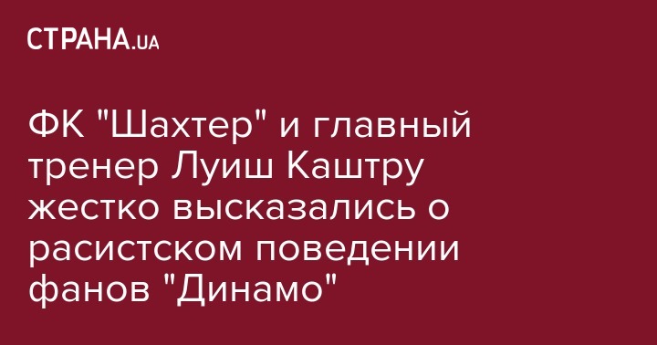 ФК "Шахтер" и главный тренер Луиш Каштру жестко высказались о расистском поведении фанов "Динамо"