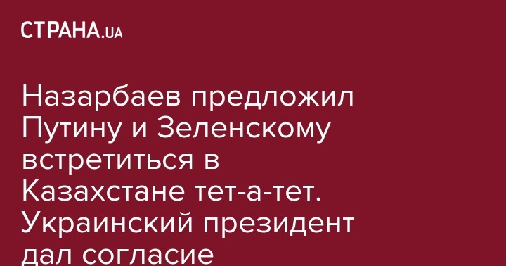 "Я встретился с господином Зеленским, послушал его. Буквально вчера говорил с Владимиром Путиным на тему, как дальше решать эту проблему... Я считаю, что нужна отдельная личная встреча президентов России и Украины", - заявил Назарбаев во время заседания дискуссионной площадки "Астана клуб".