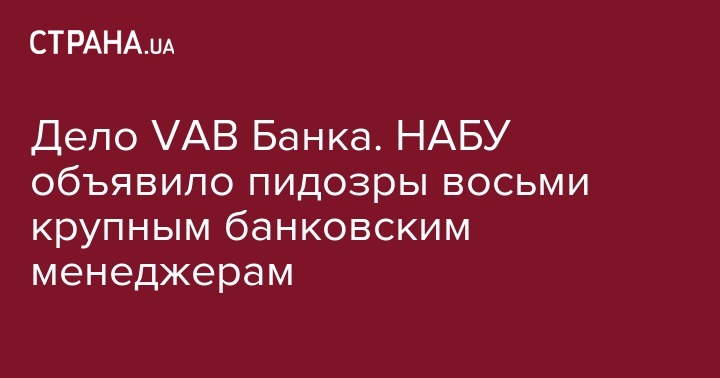 Национальное антикоррупционное бюро (НАБУ) сообщило восьми лицам о подозрении в завладении 1,2 млрд грн "VAB Банка", выделенных в качестве стабилизационного кредита. Об этом сообщает пресс-служба НАБУ