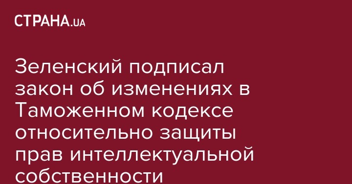 Президент Украины Владимир Зеленский подписал закон о внесении изменений в Таможенный кодекс Украины о защите прав интеллектуальной собственности при перемещении товаров через границу Украины, принятый Верховной Радой 17 октября. Об этом свидетельствует статус закона на сайте Верховной Рады.