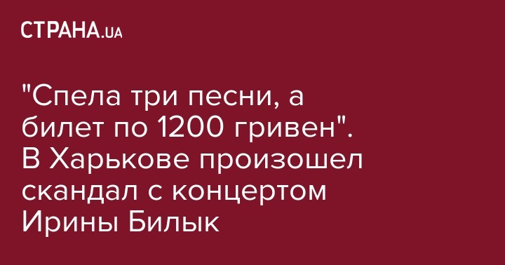 Выяснилось, что речь шла о концерте украинской исполнительницы Ирины Билык. По словам харьковчан, она вышла лишь в конце "концерта", спела три песни и покинула сцену.