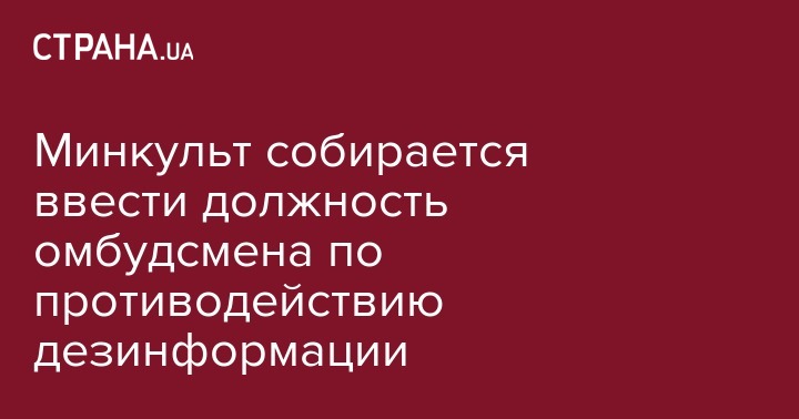 Министерство культуры, молодежи и спорта Украины рассматривает возможность введения должности омбудсмена по вопросам информации, который будет противодействовать фейкам и дезинформации. Такое заявление сделал первый заместитель главы ведомства Анатолий Максимчук во время публичной дискуссии "Свобода слова, защита журналистов и информационного пространства Украины от дезинформации (манипуляции и фейков)", передает Укринформ.