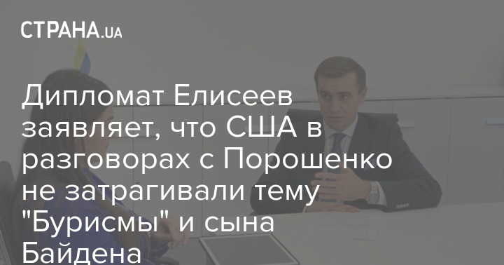 Дипломат Елисеев заявляет, что США в разговорах с Порошенко не затрагивали тему "Бурисмы" и сына Байдена
