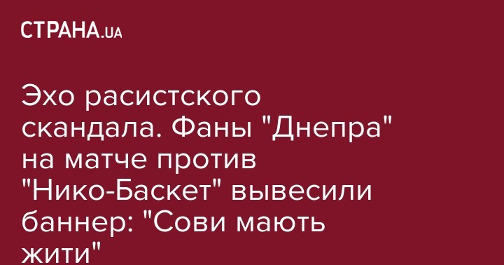 История с расистским скандалом в украинском футболе получила еще одно необычное продолжение. После того, как ультрас киевского Динамо заявили, что ухали не как обезьяны, а как совы на поединке с Шахтером, на баскетбольном матче между командами Днепр и Нико-Баскет появился баннер со словами "Сови мають жити".