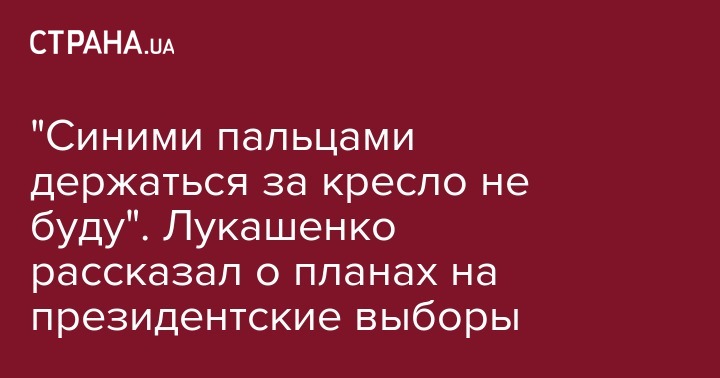 Президент Беларуси Александр Лукашенко отвечая на вопрос о своем участии в выборах, рассказал, что не будет держаться за кресло главы государства "синими пальцами", поскольку это тяжелая работа. Об этом сообщает БелТА.
