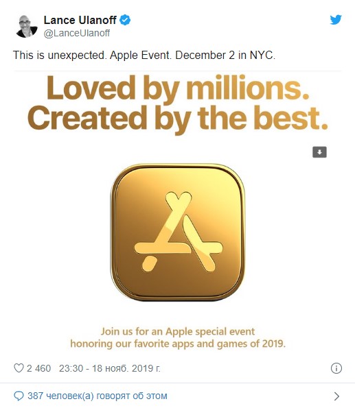 Оданко этом году Apple решила организовать целую презентацию, чтобы назвать "самые лучшие приложения и игры 2019 года". Слоганом мероприятия стала фраза "Loved by millions. Created by the best" ("Любимые миллионами. Созданные лучшими").