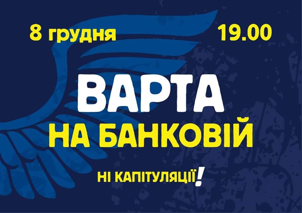 Националистический "Рух опору капитуляции" объявил о новой акции протеста под Офисом президента "Стража на Банковой", которая состоится 8 декабря в 19:00 накануне саммита "нормандской четверки" в Париже. Об этом сообщается на странице мероприятия в Facebook.
