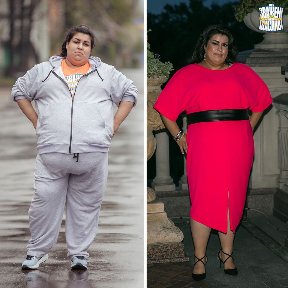 Тамара появилась в алом платье. За 13 недель она сбросила 26 кг, похудев со 123 до 97 кг.