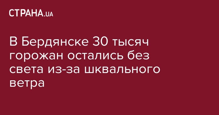 Около 30 тысяч жителей города-курорта на Азовском море Бердянска остались без электроснабжения из-за шквального ветра с 21 на 22 ноября. Об этом говорится в сообщении Районных энергосетей Бердянска, пишет пресс-служба горсовета Бердянска.