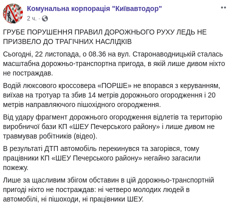 Скриншот: Facebook/Комунальна корпорація "Київавтодор"