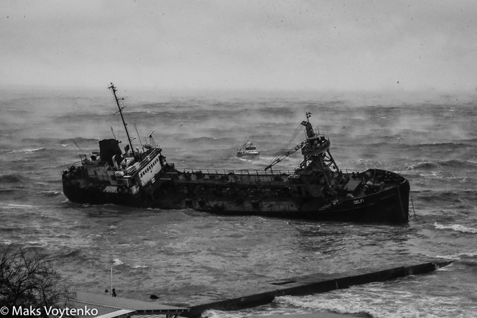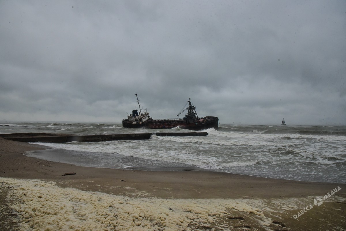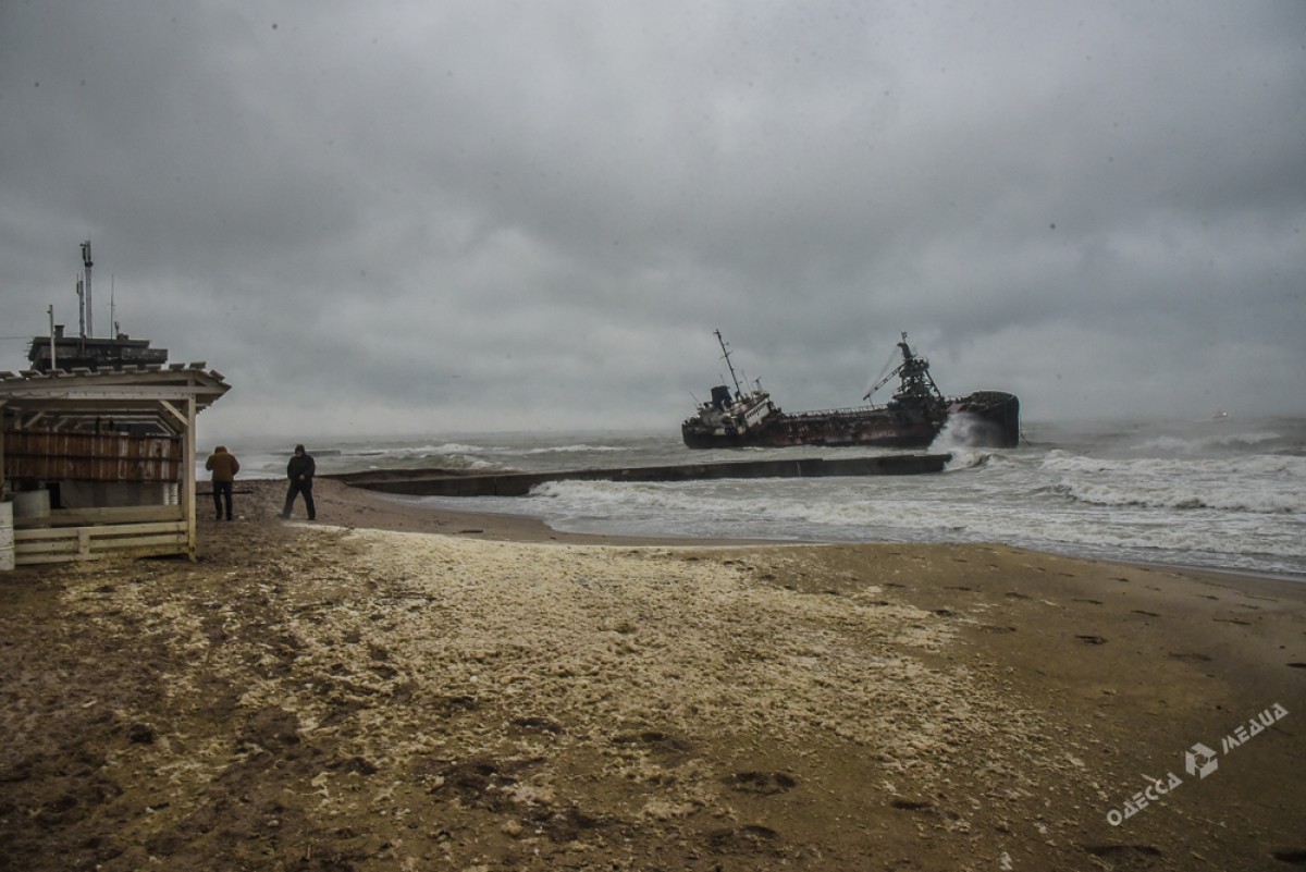Как сорванный с якоря танкер "Дельфи" прибило к одесскому пляжу. Фоторепортаж