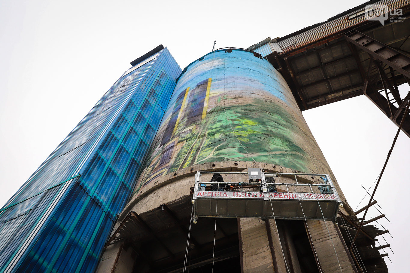 В Запорожье на территории Мокрянского каменного карьера создали крупнейший мурал Украины под названием "Город будущего", над которым три художника трудились около месяц, потратив 20 кг краски. Картина разместилась на бетонных бочках высотой 32 метра и диаметром 11,5 метров, сообщает 061.ua.