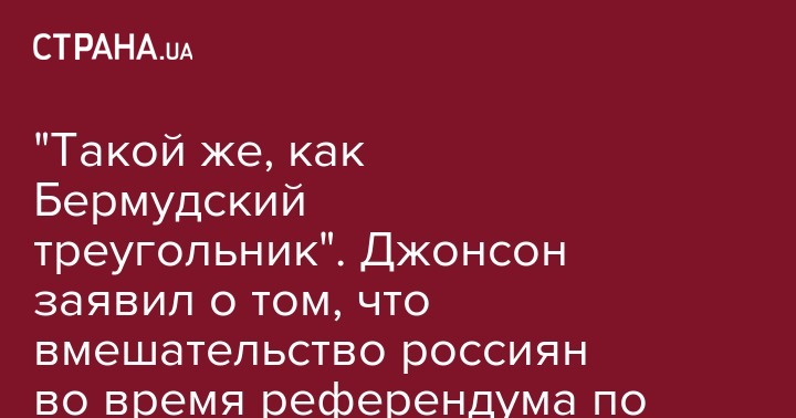 Премьер-министр Великобритании Борис Джонсон, заявил, что влияние России на результаты референдума в Британии о выходе из ЕС - это такой же миф, как и Бермудский треугольник. Об этом он рассказал в эфире телеканала Sky News.