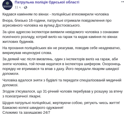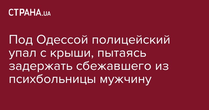 Под Одессой полицейский упал с крыши, пытаясь задержать сбежавшего из психбольницы мужчину