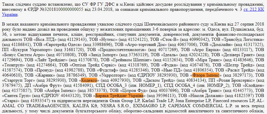 Все три фирмы указаны в определении Шевченковского райсуда столицы по указанному уголовному производству.
