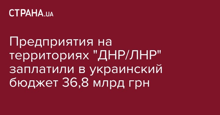 Предприятия,  имеющие регистрации на неподконтрольных Украине территориях Донецкой и Луганской областей, с 2014 года уплатили налогов, сборов и единого социального взноса (ЕСВ) в госбюджет Украины на общую сумму около 36,8 млрд грн.