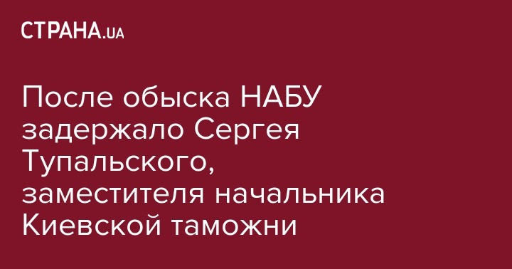 Сотрудники Национального антикоррупционного бюро (НАБУ) задержали заместителя начальника Киевской городской таможни ГФС Сергея Тупальского, у которого сегодня утром, 26 ноября, прошел обыск. Об этом сообщает "Украинская правда".